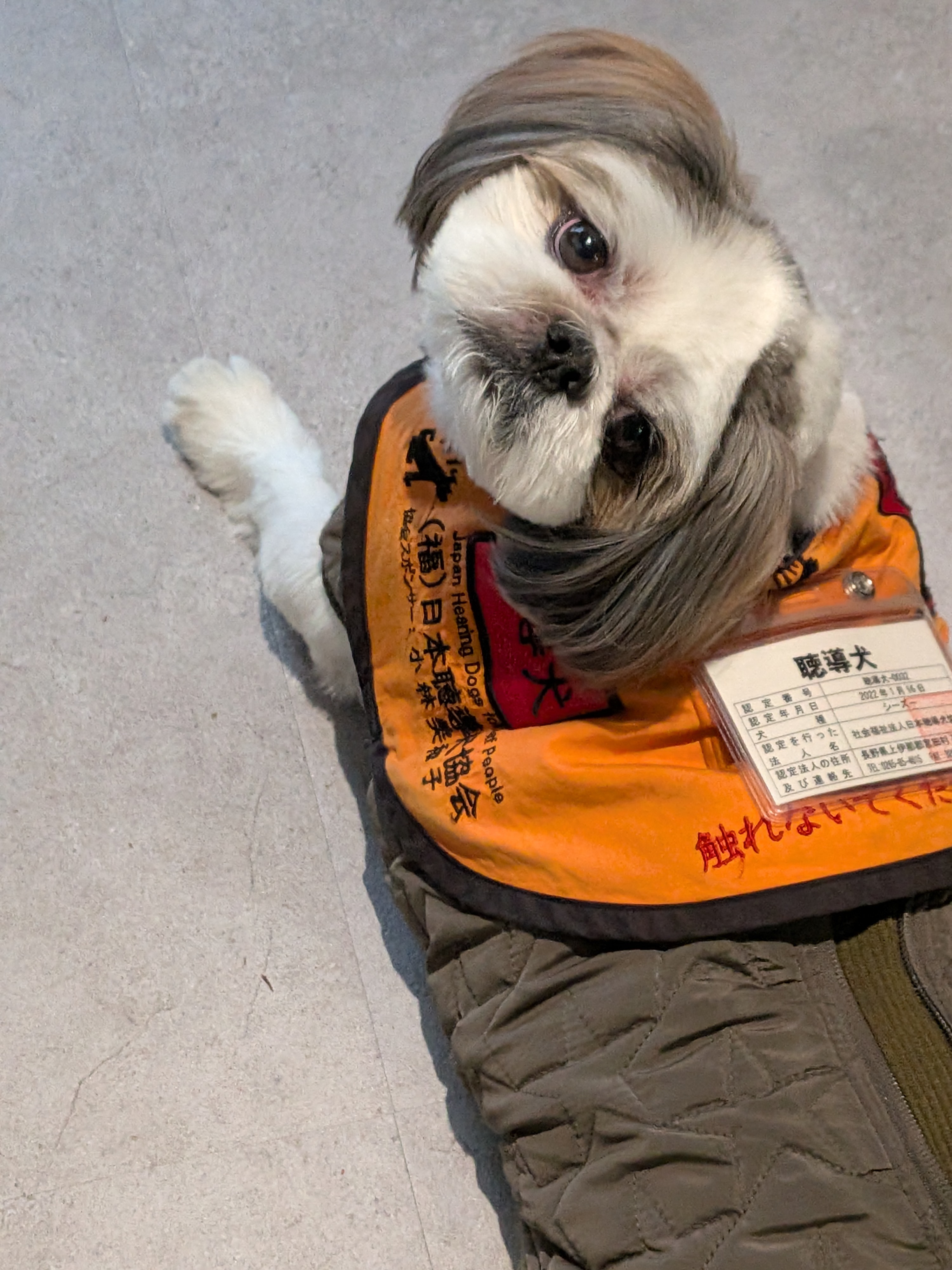 当日は協会から有馬会長を含めお二人、聴導犬「はつ君」(シーズー)、そしてユーザーさんがお越しくださいました。